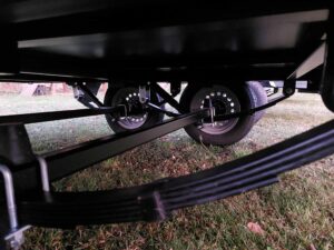 Fék nélküli alsó kerekes utánfutó laprugóval, lengéscsillapítóval