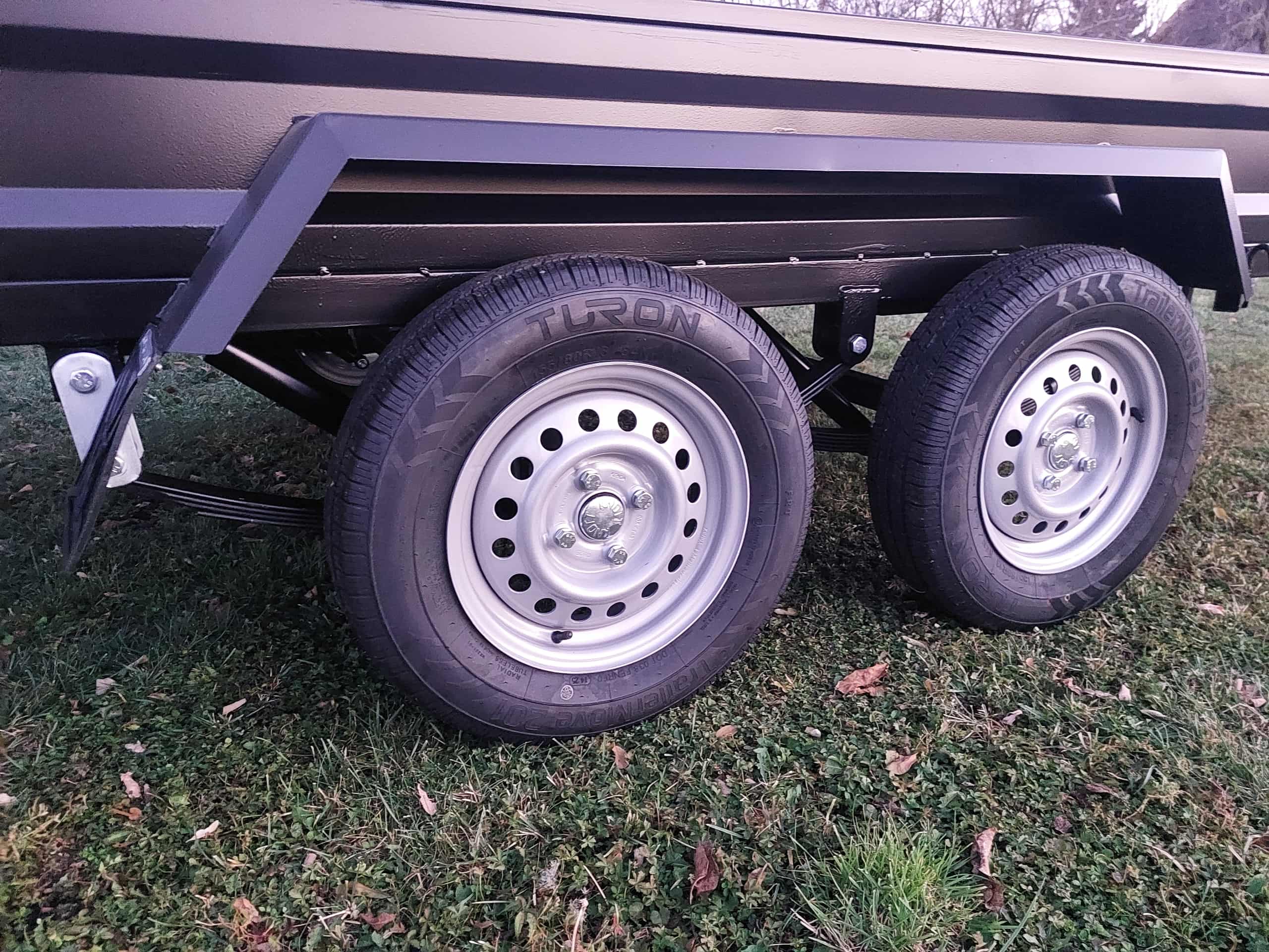 2 tengelyes fék nélküli külső kerekes utánfutó.