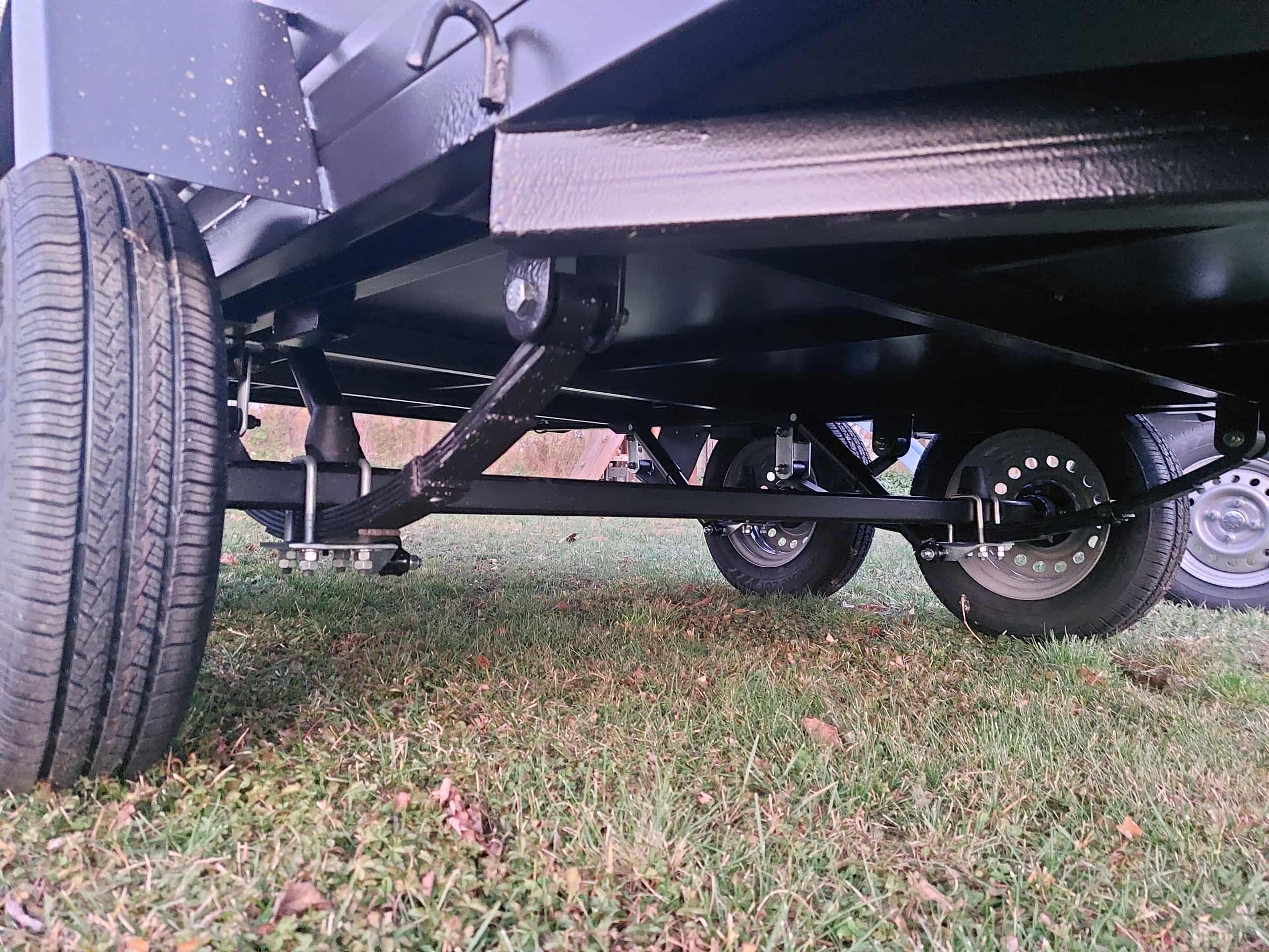 Fék nélküli alsó kerekes utánfutó laprugóval, lengéscsillapítóval